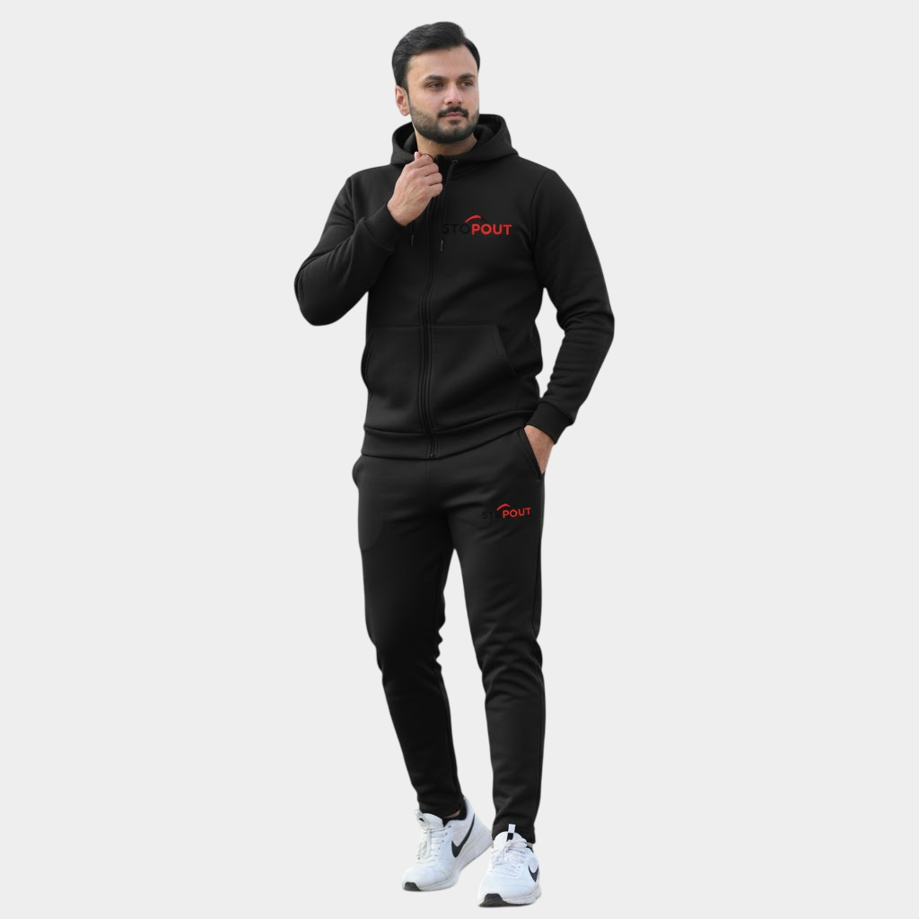 The Men’s STOP OUT Black Fleece Tracksuit Set delivers unmatched comfort with a modern streetwear edge. Featuring a full-zip hoodie and matching joggers, this 2-piece outfit is made from a soft cotton-blend fleece that keeps you warm and stylish year-round. The bold red STOP OUT logo adds a standout touch, perfect for gym sessions, casual days, or travel wear.