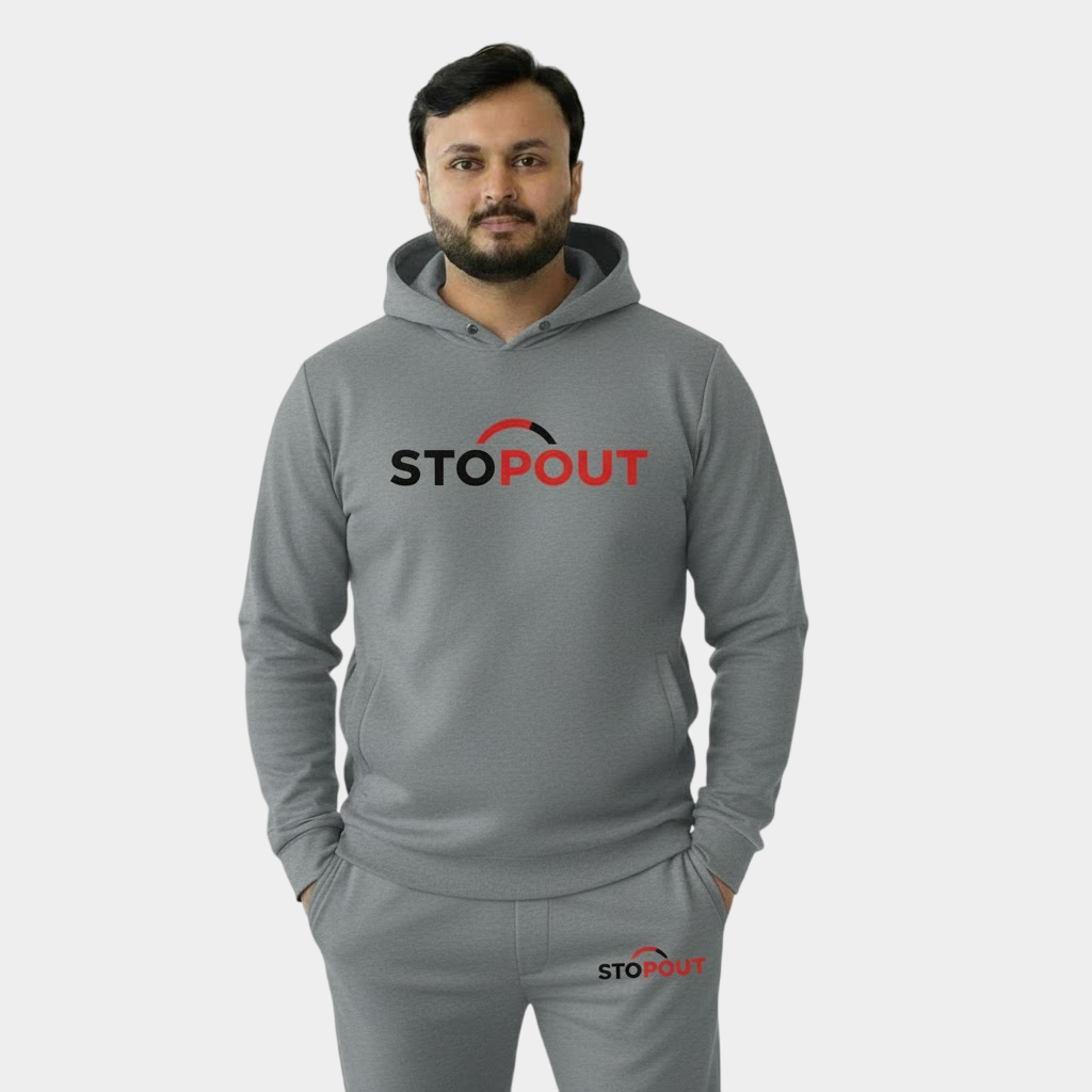 Elevate your casual wardrobe with the Men’s STOP OUT Grey Fleece Tracksuit Set. Featuring a cozy hoodie and matching joggers, this 2-piece outfit blends functionality, fashion, and comfort. Crafted from soft fleece fabric, it’s ideal for workouts, lounging, or streetwear styling. The signature STOP OUT logo adds a bold, confident edge — perfect for men who embrace comfort without compromising on style.