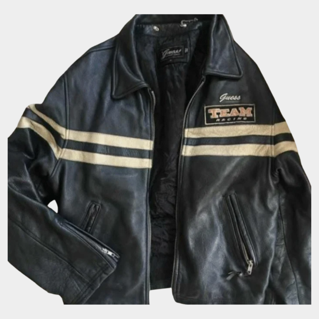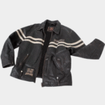 Vintage Leather Biker Jacket Men Size L, Striped Motorcycle Jacket